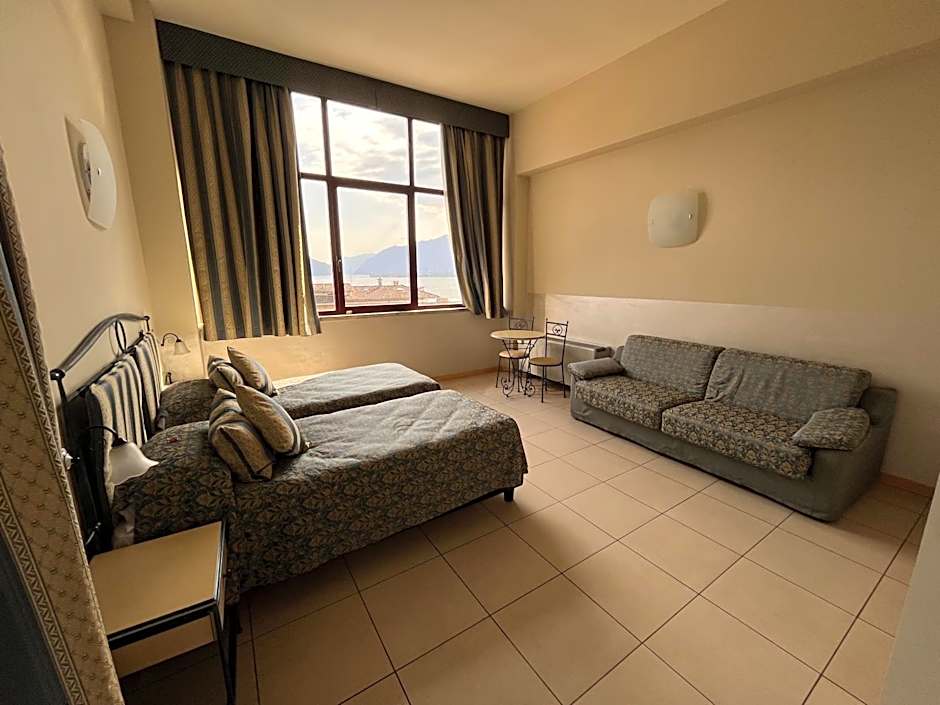 Our Superior Laterali are 25-30m2 rooms and are located on the first floor facing the street or on the third floor (quieter rooms), with PARTIAL/SIDE LAKE VIEW due to roofs or houses. It is possible to request rooms on the first or third floor and the possibility will be evaluated based on the hotel's occupancy. These rooms are all equipped with divisible double beds, some have a third single bed, others a sofa bed to accommodate up to 3 people (4 if at least one is a child under 12). One room is on two levels with access via steps and the only one with a king size bed. The flooring is in light tiles and the bathroom has a shower (no bathtub). Dogs are allowed, on request, with a supplement.